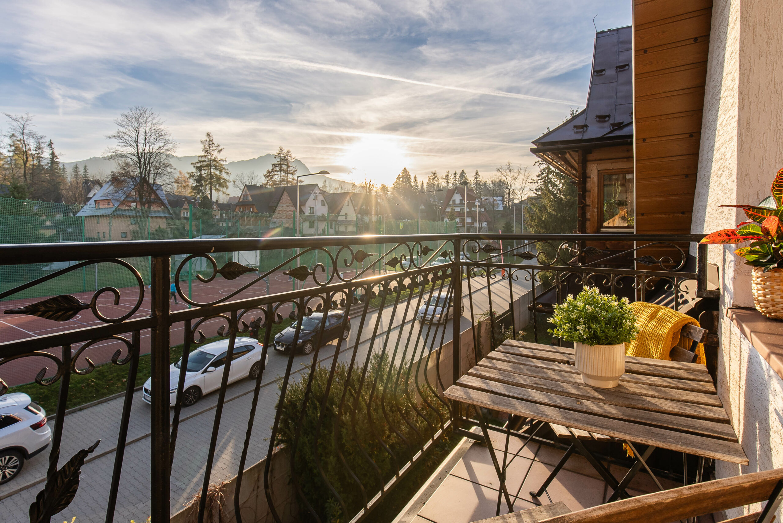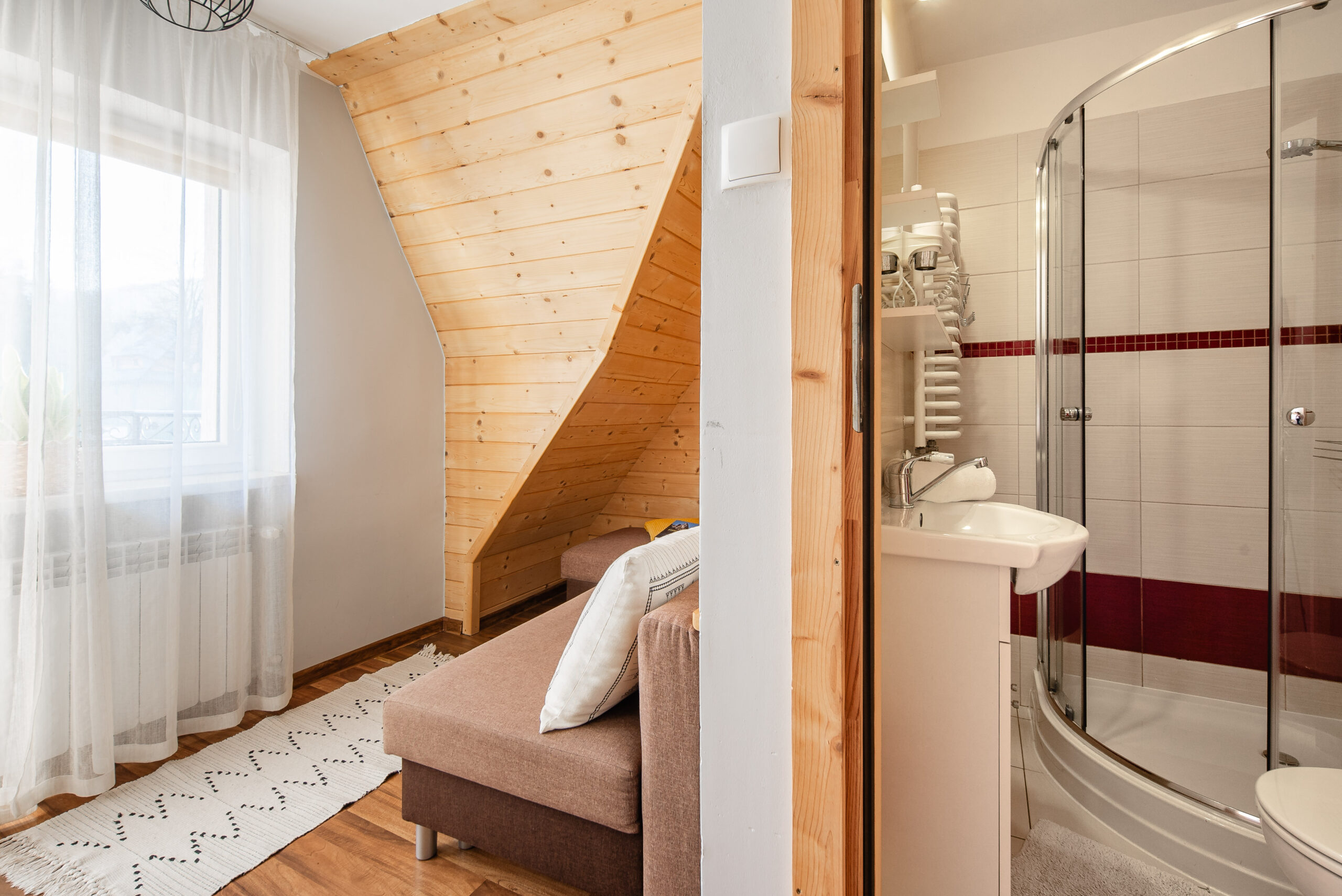 Pokój posiada balkon oraz taras z pięknym widokiem na Tatry, dzięki czemu można cieszyć się wyjątkową panoramą gór o każdej porze dnia. Do dyspozycji gości jest również prywatna łazienka z prysznicem, wyposażona w ręczniki i suszarkę do włosów.