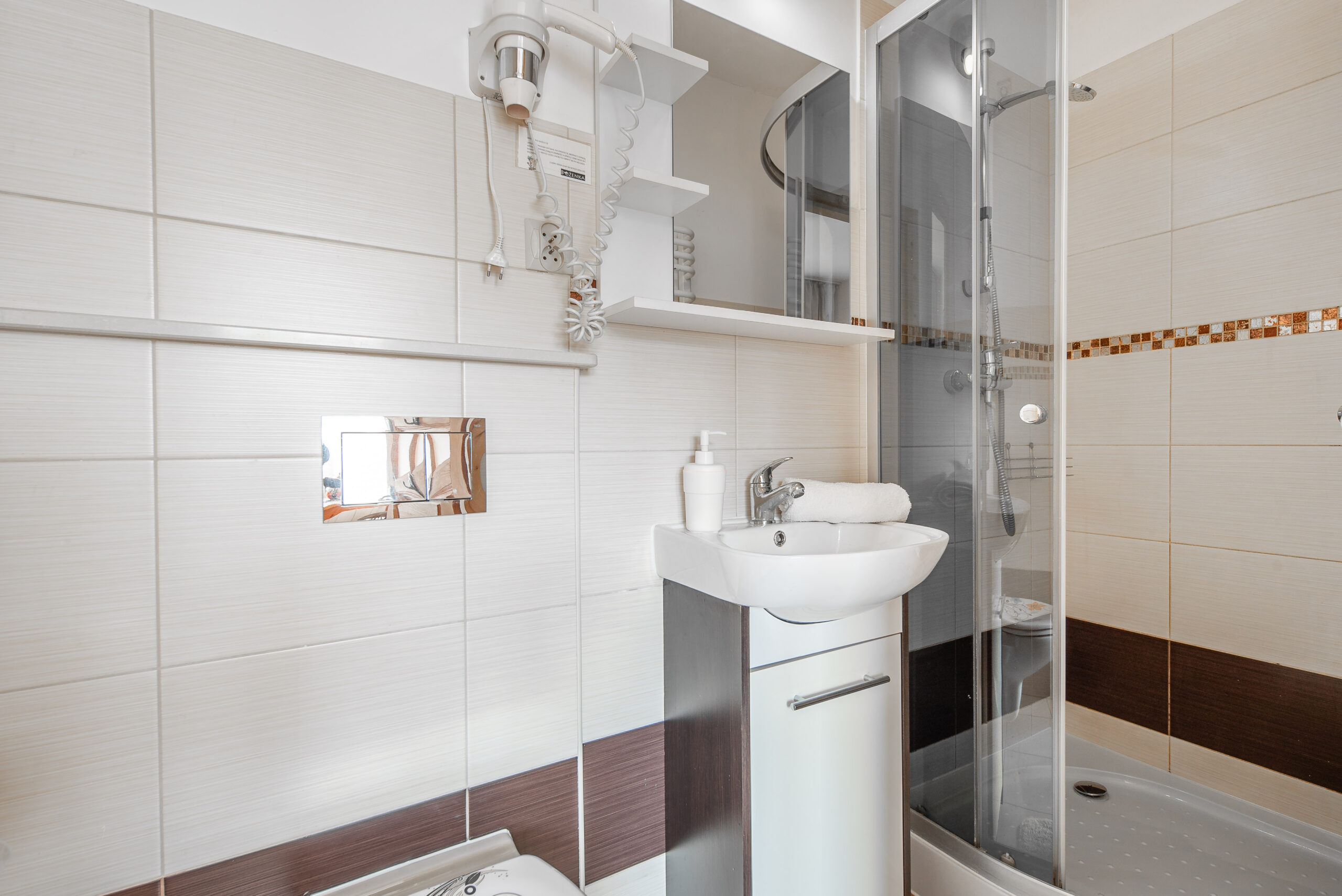 Pokój posiada balkon oraz taras z pięknym widokiem na Tatry, dzięki czemu można cieszyć się górskim krajobrazem o każdej porze dnia. Do dyspozycji gości jest także prywatna łazienka z prysznicem, wyposażona w ręczniki i suszarkę do włosów.